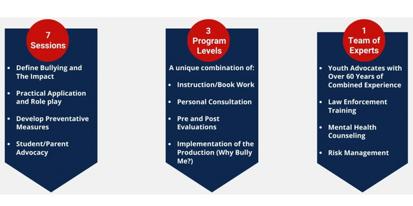 The Bully Stoppers Program is the first level of education for youth, adults the provide the baseline for understanding what bully is and is not. Our sessions are interactive and informative tackling the issues that may be causing the negative behavior and building low self esteem. Schedule an appointment today.
